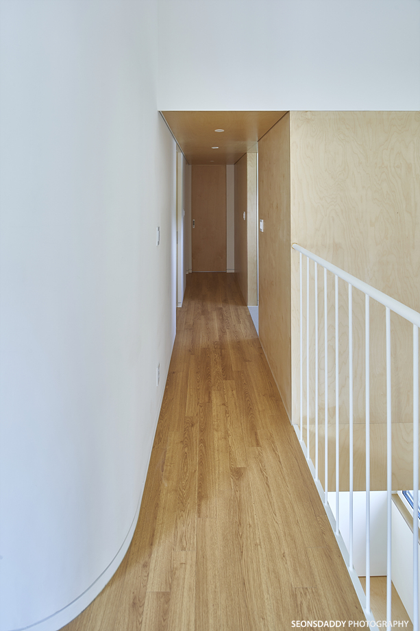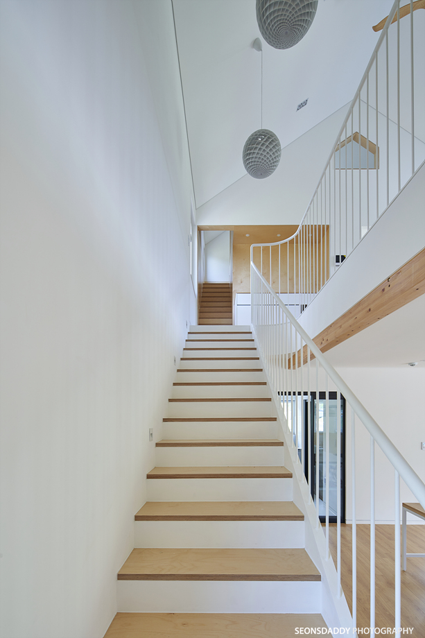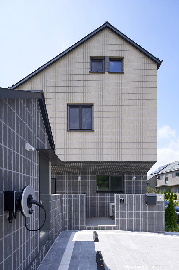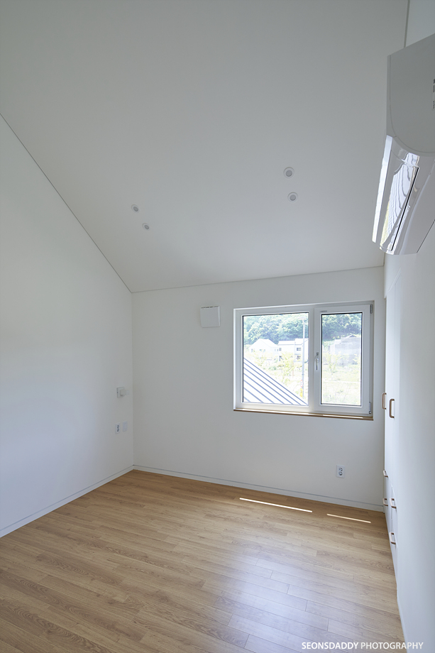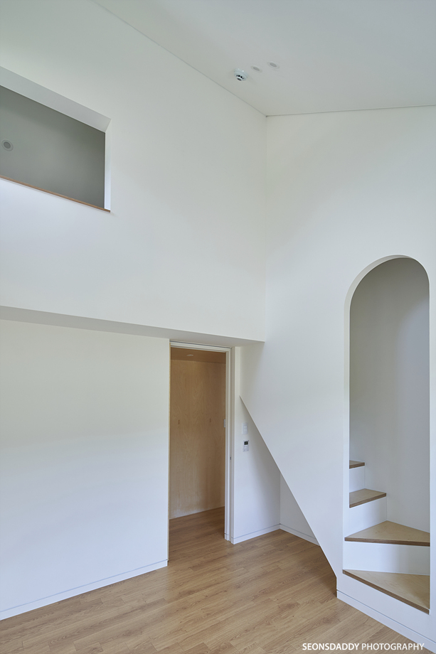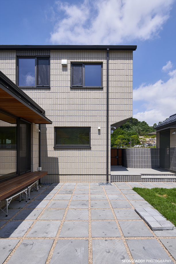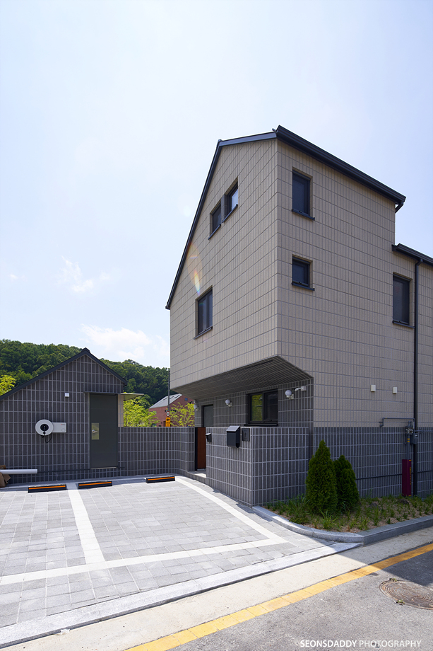 세로타입으로 적용한 외장마감은 주택을 보다 규모있고 스타일리시한 느낌으로 더해 줍니다. 라운드처리된 키 낮은 담장과 대문은 이 집의 첫인상에 아늑함을 더하며, 내부에 노출된 중목은 정체성과 더불어 따뜻함을 공간에 드리우는 듯 합니다. 나무의 따스함에 화이트의 깔끔한 느낌이 어우러지는 이 집은 다양한 수납공간이 주는 생활의 편리성과 더불어 두 개의 다락방을 통한 프라이빗한 공간 활용이 기대되기도 합니다.