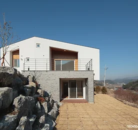 양평 수능리주택, Sooneung-ri House, 전원주택의 고장, 양평군에 위치한 수능리주택이 제 모습을 드러냈습니다. 실거주 내부면적 기준 약 40평 규모의 크지 않은 집이었지만 매스가 주는 모던함은 주택을 보다 웅장한 감으로 다가오게 하는 듯 했습니다. 또한, 일일이 수작업을 통해 다듬고 쌓아올려진 담장, 그리고 계단은 집으로 향하는 한 걸음 한 걸음에 왠지 모를 따뜻함, 우리네 정서가 주는 포근함을 더해주는 듯 했습니다. 스타일이 주는 군더더기 없는 세련미에 분위기로 느껴지는 따뜻함과 포근함, 수능리 주택이 품은 가장 큰 매력이 아닌가 싶습니다. ..., 수능리주택, 양평 ..., 010.3317.0166 더보기