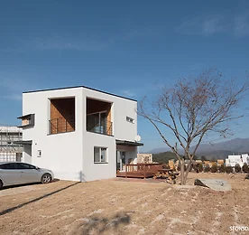 [전원주택] 박스의 심플함이 도드라지는 집, 가평주택 작은 규모를 효율적으로 활용하기 위한 심플한 박스형 디자인이 도드라집니다. 1층에는 침실과 주방, 그리고 작은 다용도실과 욕실이 자리하고 있으며 2층에는 메인침실과 거실이 자리하고 있습니다. 거실에는 여유로운 테라스공간이 딸려있어 2층에서도 따사로운 햇살과 바람, 한적한 풍경을 맘껏 즐길 수 있도록 계획되었습니다. 군더더기 없는 내부마감은 화려하진 않지만 오래 두고보아도 질림이 없을 듯 합니다. 또한, 거주자의 취향에 따라 꾸밀 수 있는 좋은 배경이 되기도 합니다.작은 주말주택, 혹은 가족수가 많지 않아 실용적인 집을 계획중이시라면 한번쯤 눈여겨볼 만한 집입니다. 전원주택 | 단독주택 | 상가주택 | 다가구주택 | 근린생활시설 설계/시공 상담 신청 https://docs.google.com/forms/d.. 더보기