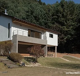 [전원주택] 지형에 순응한 집, 언덕 위 ㅡ자집 전원주택을 계획하며 이곳저곳의 토지를 찾다보면 흔히 만날 수 있는 곳이 바로 경사지입니다. 지목이 대지이며 구옥이 있는 경우라면 그렇지 않겠지만 비교적 낮은 가격의 토지들은 임야나 전인 경우가 많기 때문입니다. 집을 짓기 위해서는 땅을 평평하게 하기 위한 토목공사가 선행되곤 하는데 이 집은 이러한 토목공사비용을 상당부분 절감할 수 있는 좋은 모델이라 할 수 있습니다. 물론, 취향에 따른 선택이겠지만 말이죠^^.언덕위 ㅡ자집은 연면적 24평 규모의 컴팩트하우스입니다. 도로가 접한 2층 부에 거실과 주방, 욕실, 그리고 작은 침실이 배치되어 있으며 아랫마당이 아늑한 분위기를 연출하는 1층에는 메인침실과 욕실이 자리하고 있습니다.메인침실에서 작은 테라스를 거쳐 마당으로 연계되는 1층 동선은 오롯한 휴식과 자연.. 더보기